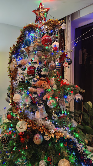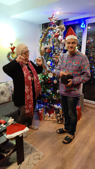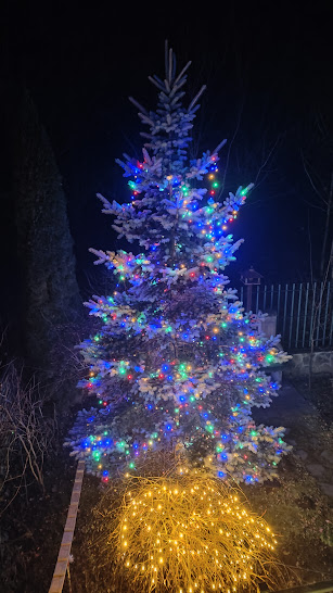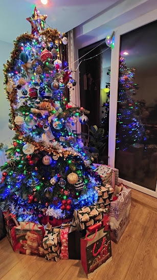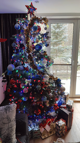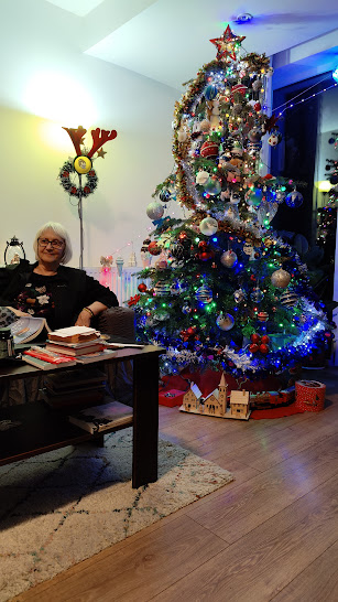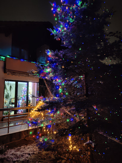 Altfel, din partea a doua a lunii am instalat luminițe afară, în bradul argintiu din spatele casei și în copacul cu frunze roșii din fața casei, am împodobit balcoanele la dormitor și la „camera lui Laurențiu” (fiul, venit de la București, de la el de acasă, a stat cu noi de Crăciun; va sta până pe 3 ianuarie); am pus șase coronițe de brad vii, cu flori de crăciuniță în casă. Pe 21 decembrie am instalat Bradul viu cel mare în sufragerie, l-am împodobit în fel și chip cu instalații electrice, globuri, beteală, subliniind litera S (a numelui nostru).